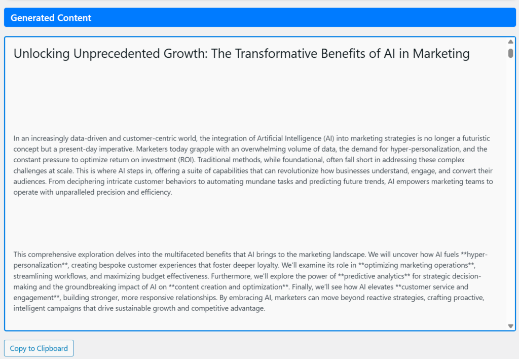 WordPress AI Content & Image Generator.